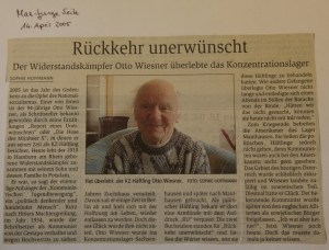 Im Jahr 2005 schrieb ich einen Artikel für die „Junge Seite“ einer Potsdamer Lokalzeitung. Na und?, werden Sie vielleicht denken, aber für mich als damals 17-Jährige war dies nicht irgendein Artikel, es war die Essenz meines Gespräches mit dem Schriftsteller, Kommunisten und KZ-Überlebenden Otto Wiesner, der außerdem mein Nachbar war.